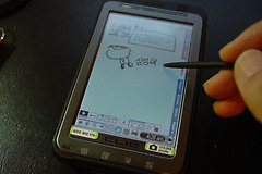 이것이 바로 Tungten T2의 뒤를 이을 SONY Clie PEG-TH55이다! 새롭게 추가된 소니에서 만든 Clie Oganizer(PIMS용 어플), 검은 색상에서 뿜어져 나오는 칼있으마!, 30만 화소의 고성능(?) 카메라, WiFi 무선인터넷, 320*480 고해상도, 변강쇠 베터리등등 나를 다시 클리앙으로 만든 기기이다. 사람 얼굴과 이름을 동시에 기억 못 하는 병이 있는 내겐 Clie Oganizer Address의 사진 첨부 기능은 절실히 필요했던 부분을 채워줬다. 아무래도 CEO 되서 비서두기 전까진 PDA 없으면 안될 것 같은..