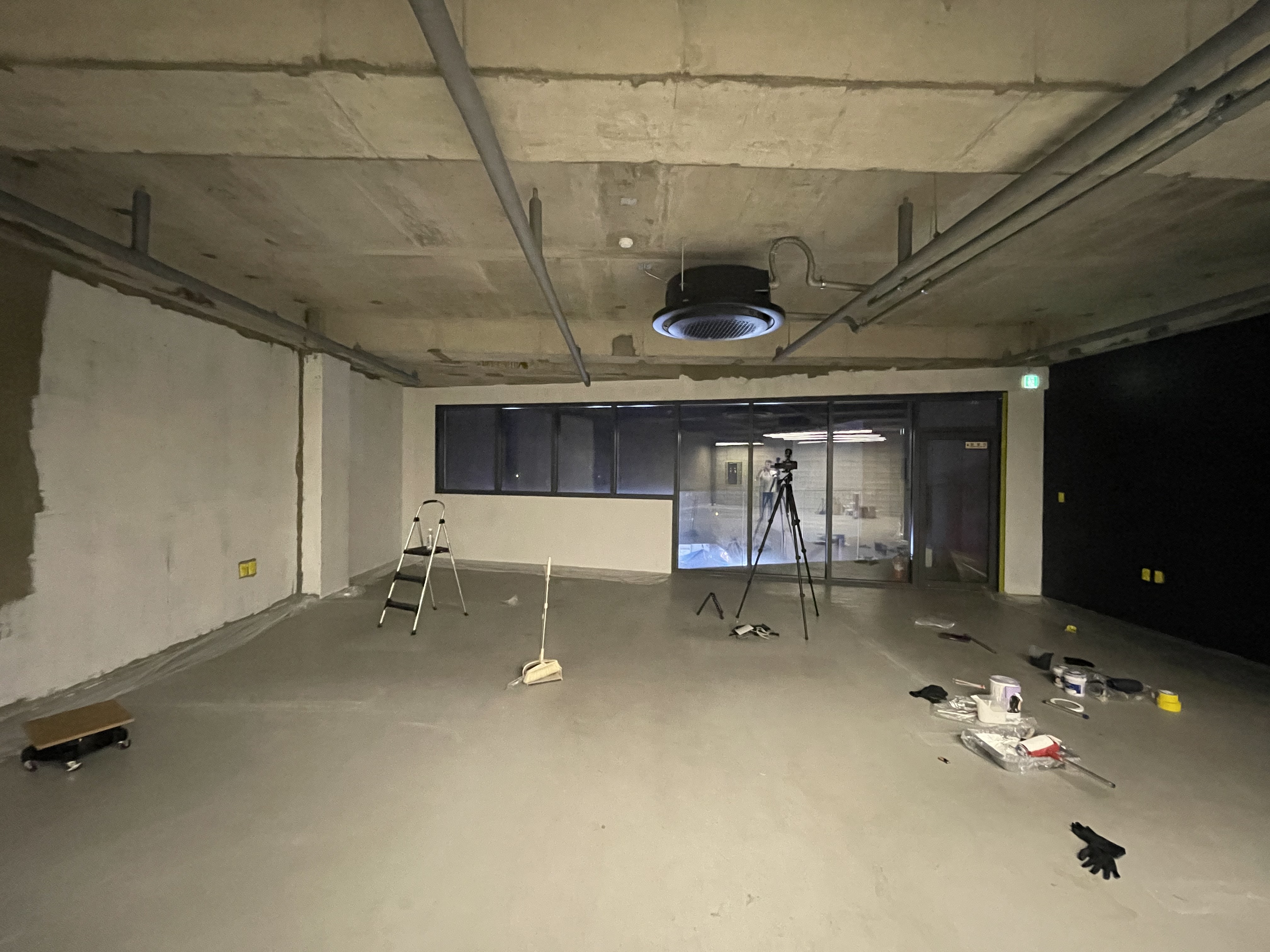 왼쪽을 업무공간으로 만들 곳이다. 오른쪽 휴게공간은 빛 반사를 줄이고 편안한 느낌을 주기 위해서 벽을 검은색으로 칠했지만, 업무공간은 집중도를 높이기 위해서 흰색으로 벽을 칠했다. (다시 한번 말하지만 페인트 작업은 꼭 업체를 불러서 하길 바란다)