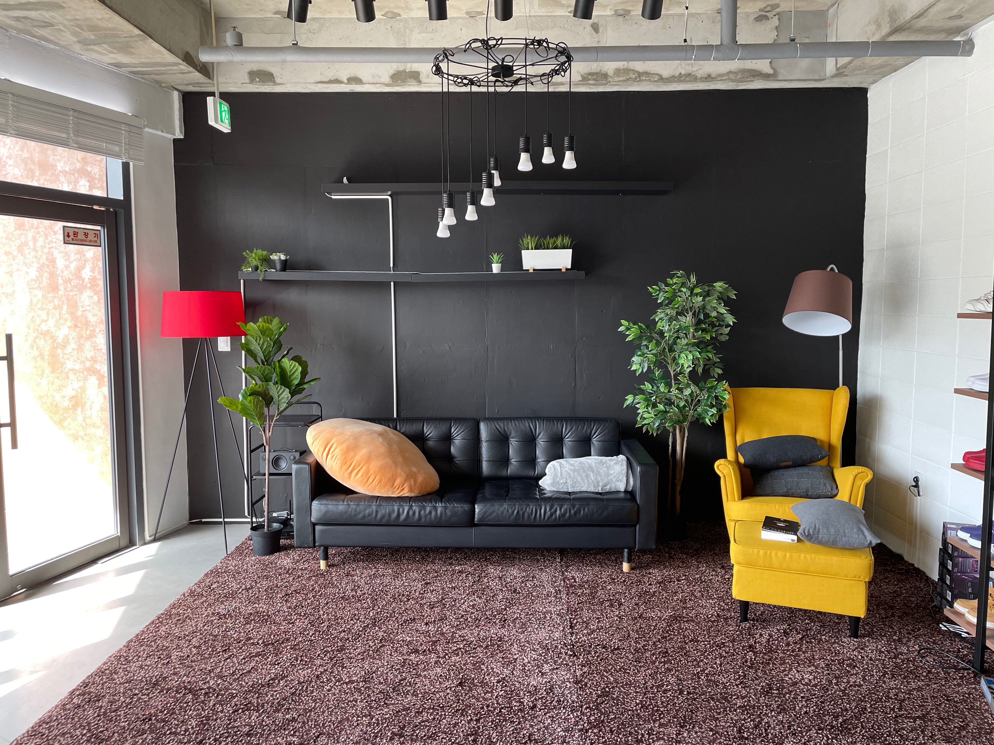 러그를 깔고 인조 식물을 배치하니 이제 좀 휴게공간처럼 보인다.