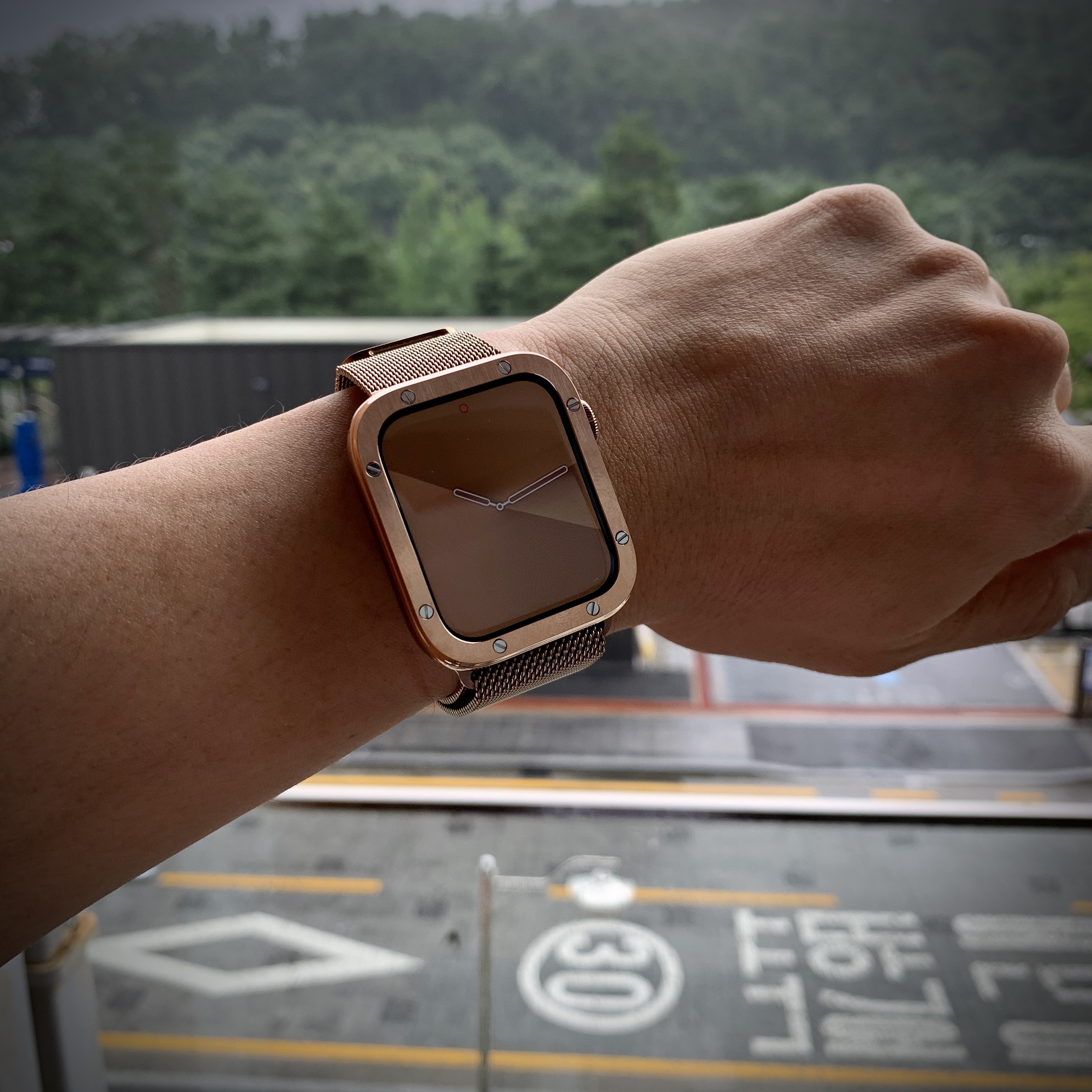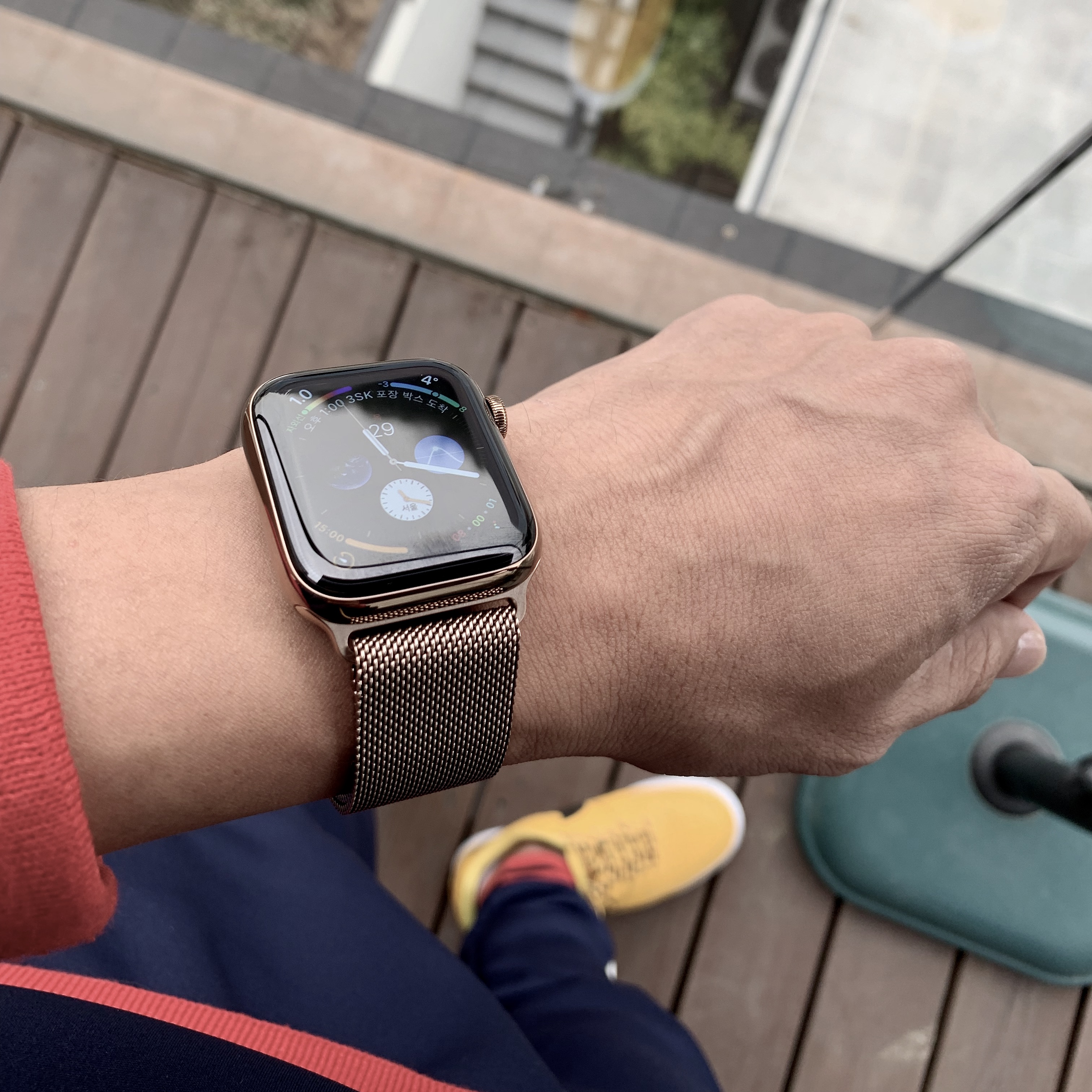 그러다가 링케 베젤 스타일링이란 악세사리가 달려있는 회사 직원의 애플워치를 발견했고 주저 없이 바로 주문을 했다. 정말 약간의 사이즈 변화이지만 애플워치는 충분히 손목에서 존재감을 뿜어내기 시작했다. 링케 베젤 스타일링의 유무 비교샷은 사진으로는 잘 표현되지 않지만 실제로는 꽤나 차이가 난다.