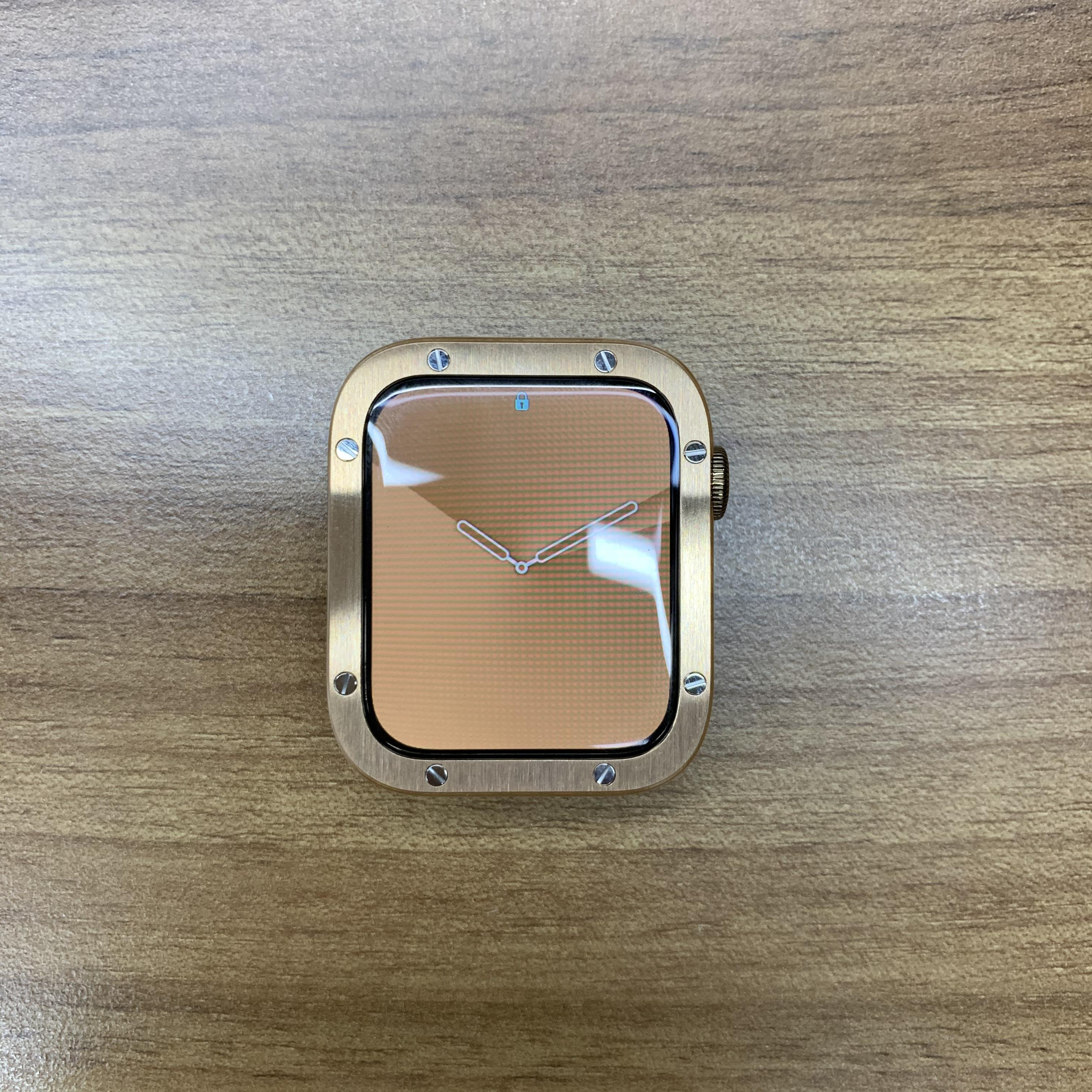 검정색 베젤이 가려지고, 두께감이 살아나면서 애플워치가 더 커 보이는 효과가 있다. 그리고 애플워치와 같은 골드 색상이라서 전체적으로 덩어리가 커지는 효과까지 있다. 물론 스테인리스 재질이라 원래 목적인 애플워치 보호에도 매우 충실한 제품이다.