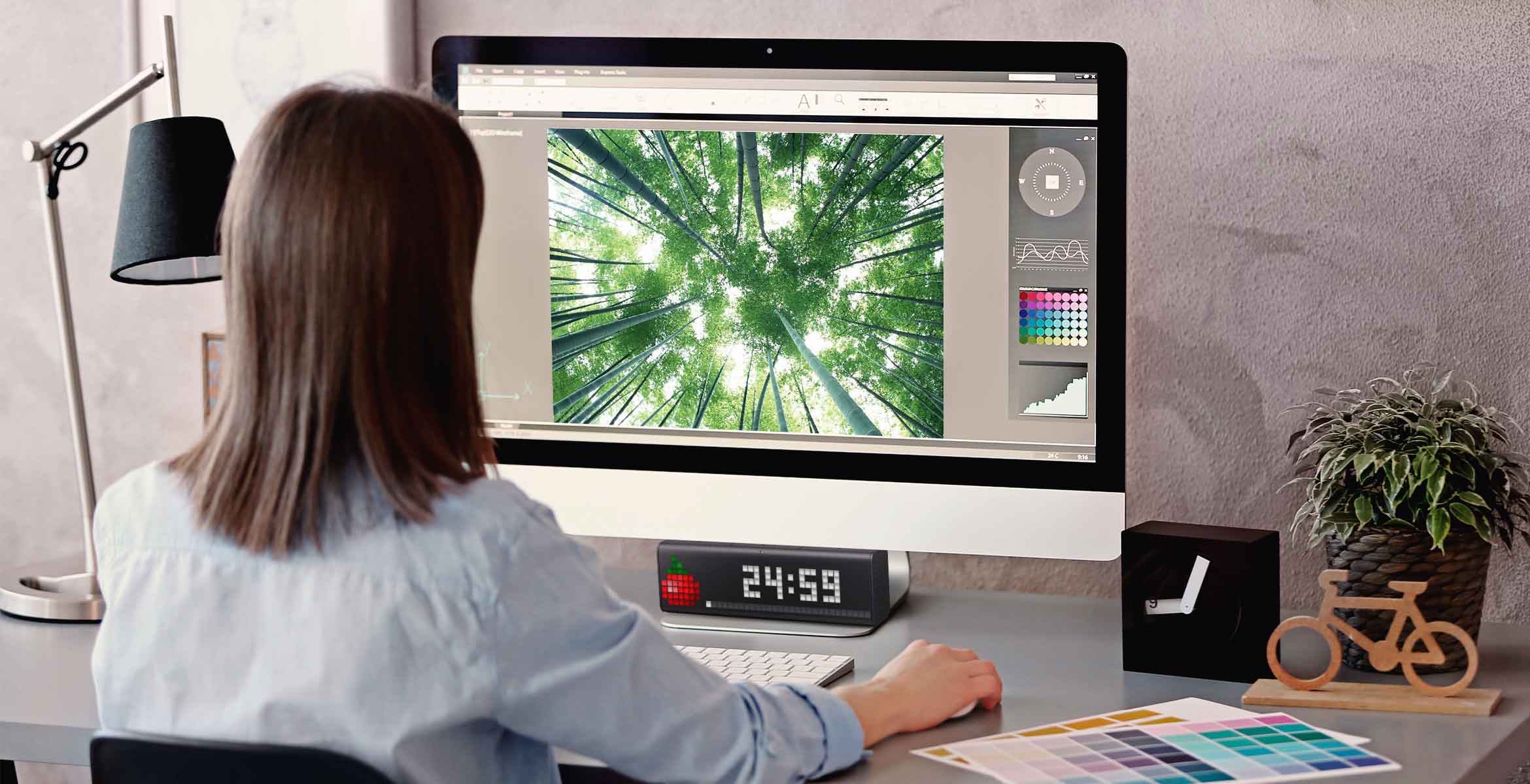 타이머 기능도 있지만 이것 역시 특별한 기능이라 할 수 없다. 오히려 한 손에 들어오는 작은 스마트폰이 타이머 기능은 더 충실하고 훌륭하다. 근데 이쁘다. 마치 아이맥 거치대 위가 자기 자리인 양 너무 잘 어울리지 않는가?