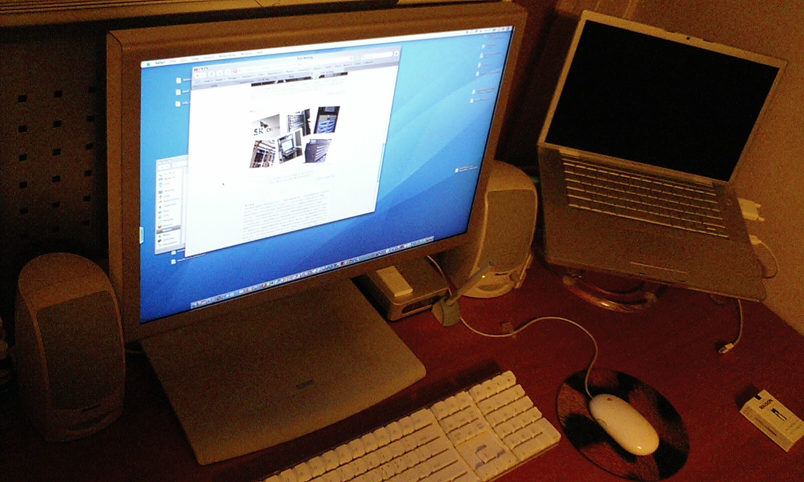 2005년 이 때 정말 꿈의 조합을 완성한 느낌였다. 시네마 디스플레이와 맥북 프로 15인치. 이 조합은 2005년 당시 많은 사람들이 원하는 데스크 셋업이였다. 맥북 프로 15인치와 시네마 디스플레이를 자랑하는 사진들이 해외 커뮤니티에서 올라왔다 하면 사람들의 호응이 엄청났던 기억이 있다.