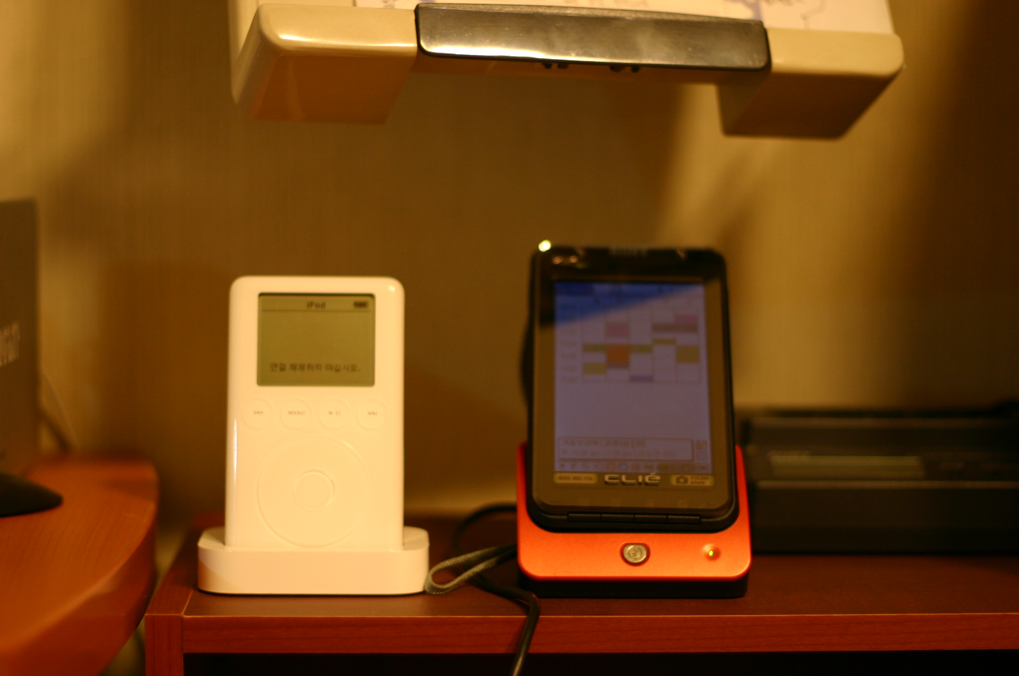 이 때도 애플은 무섭게 자신들의 생태계로 맥 사용자들을 빨아들이는 방법을 알고 있었던 것 같다. 자연스럽게 구매한 아이팟. 그리고 옆에는 지금의 스마트폰 같은 역활을 해주던 소니 Clie PDA.