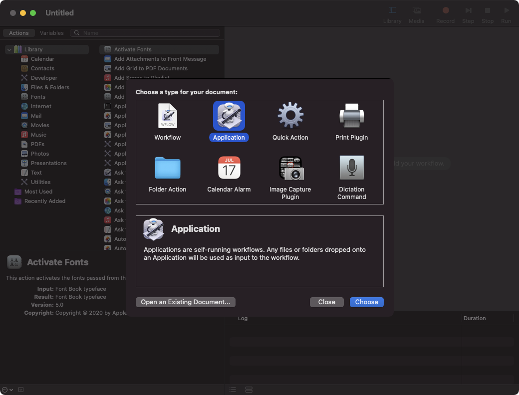 우선 오토메이션을 실행한다. 그리고 문서 종류를 어플리케이션으로 선택한다.