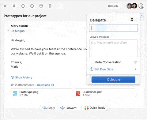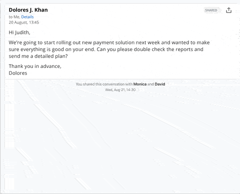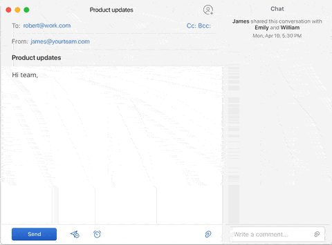 그리고 가장 많이 사용하는 기능은 코멘트 기능입니다. 메일에 대한 의견을 남길 수 있고 코멘트에서 파일 첨부도 가능하기 때문에 이메일 클라이언트에서 벗어나지 않고 의견 수렴이 가능합니다. 이메일을 받았을 경우, 새로운 이메일로 의견을 보내거나 별도의 메신저를 통해서 의견을 주고 받아야 하는데 이것을 스파크 안에서 한번에 처리할 수 있기 때문에 의견 결정이 매우 빠르게 이뤄집니다.